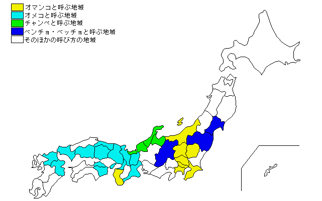 よく使われる言葉で地域を色分けしてみました。 地域によっていろいろな言葉がありますので、これはあくまでも目安です。